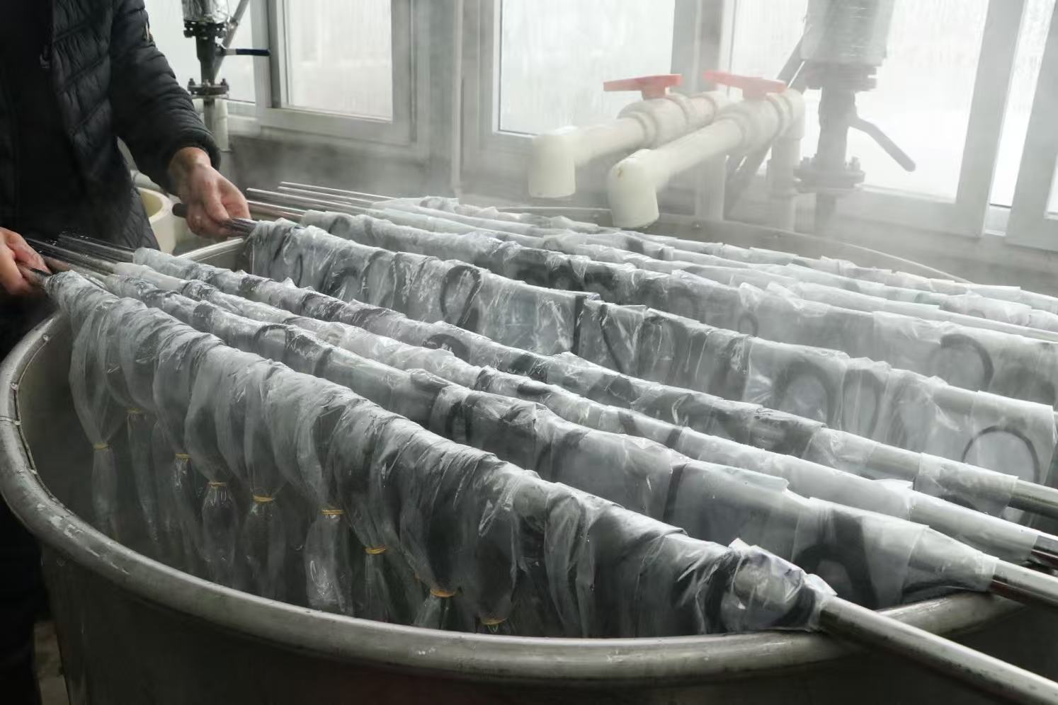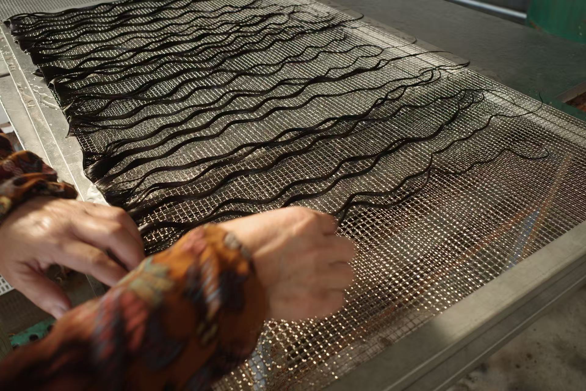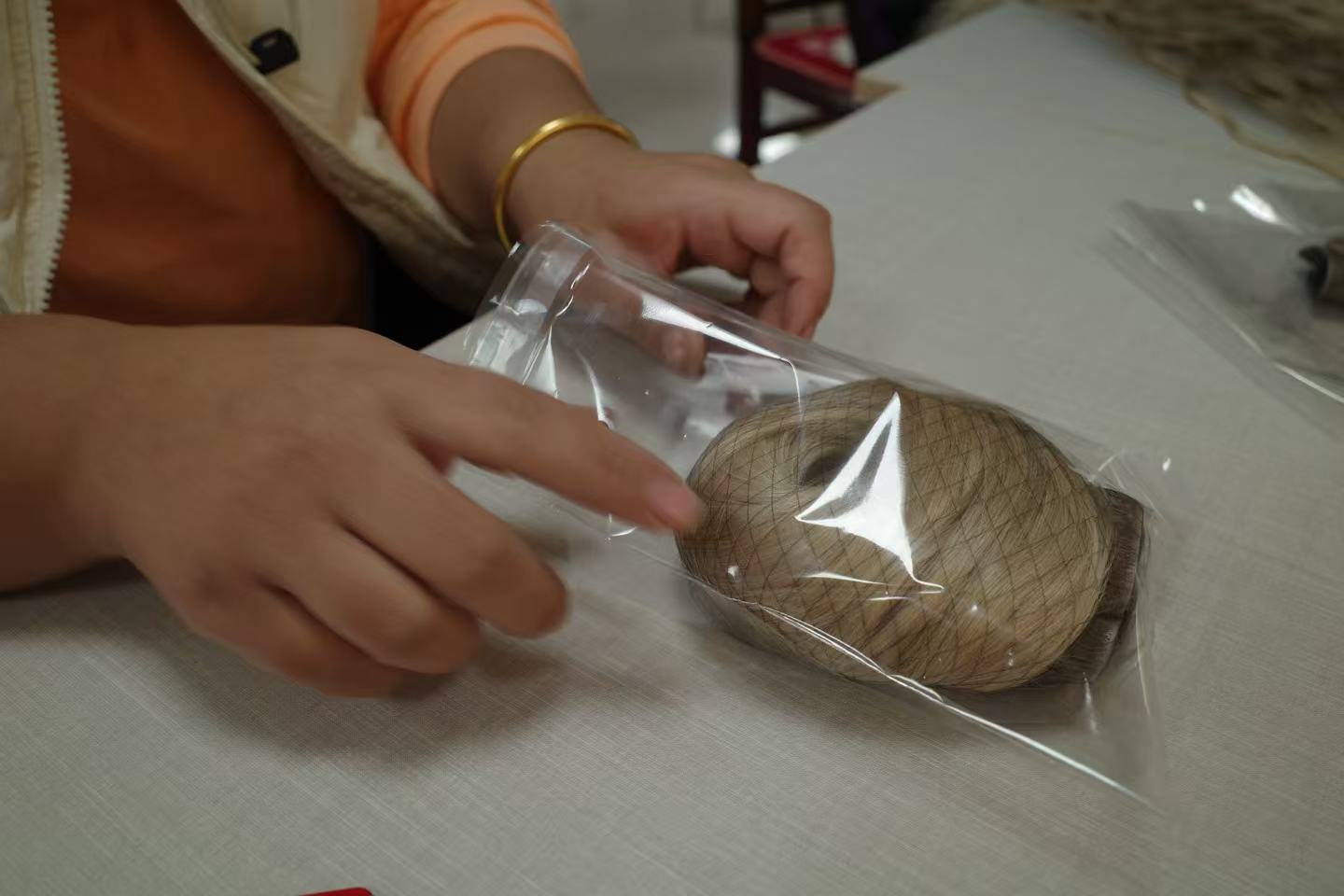 Hair is packaged in its natural wave, carefully placed in a hairnet, and prepared for release.