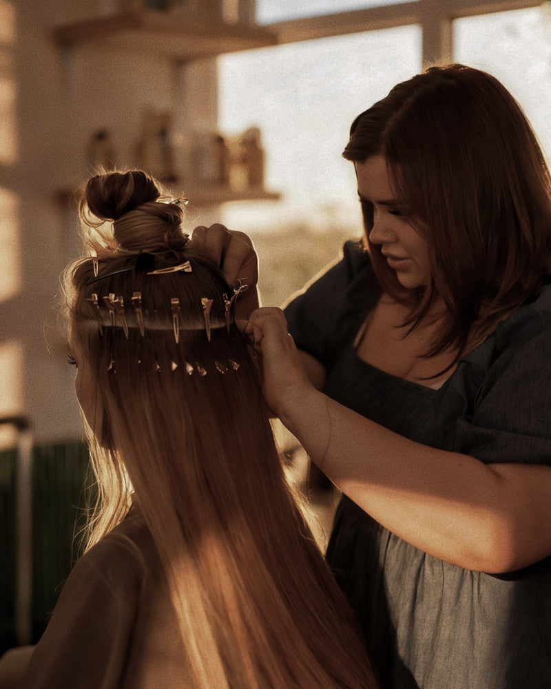 Lightening is performed slowly and intentionally, preserving the strength and natural feel of the hair before color is introduced.