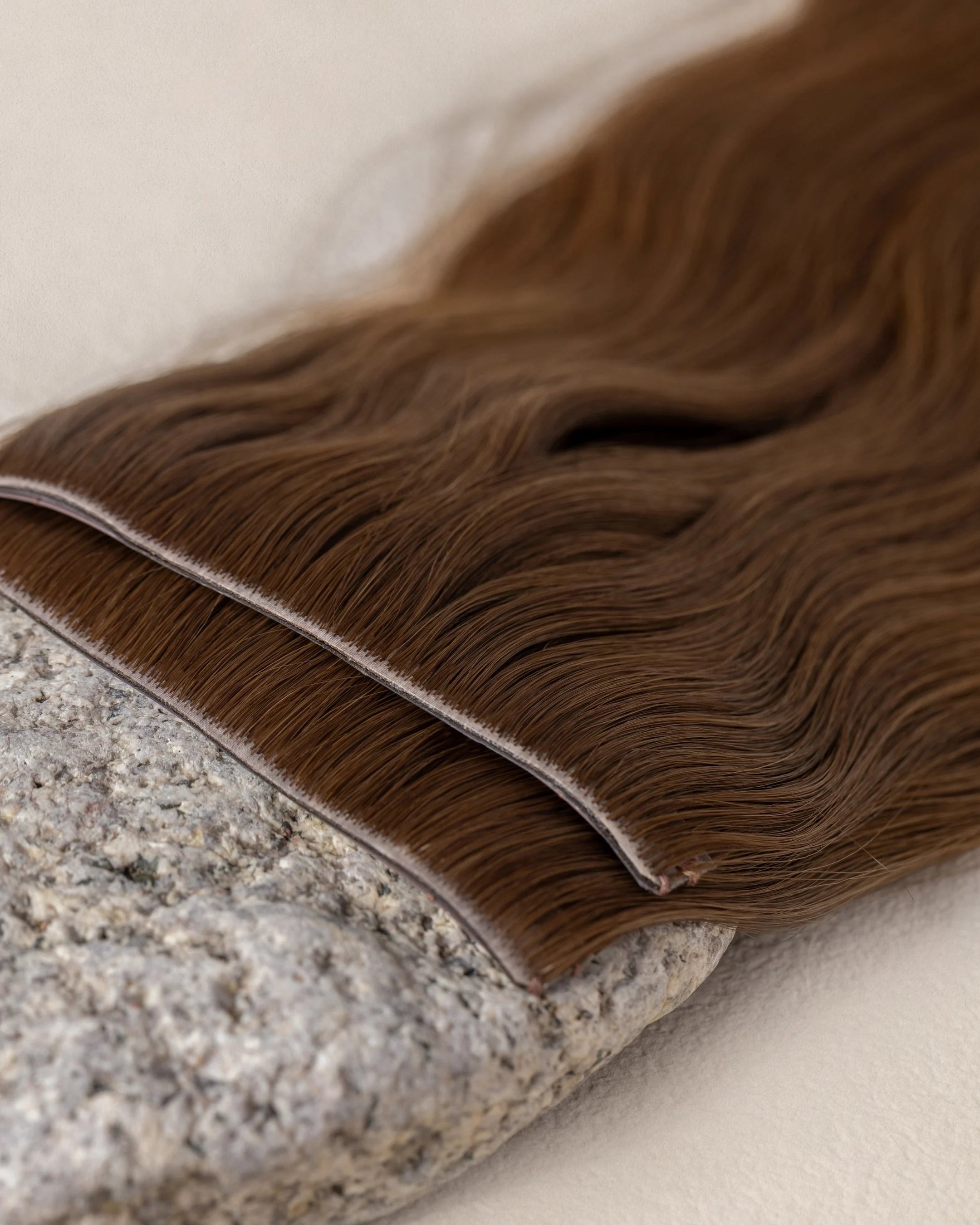 Clip-in hair extensions are temporary hair extensions designed to add length, volume, or fullness without permanent installation. Celviá clip-in extensions are applied using our patent-pending CelviSkin base, allowing for a secure, comfortable fit that can be worn daily or occasionally and removed at any time without damaging natural hair.