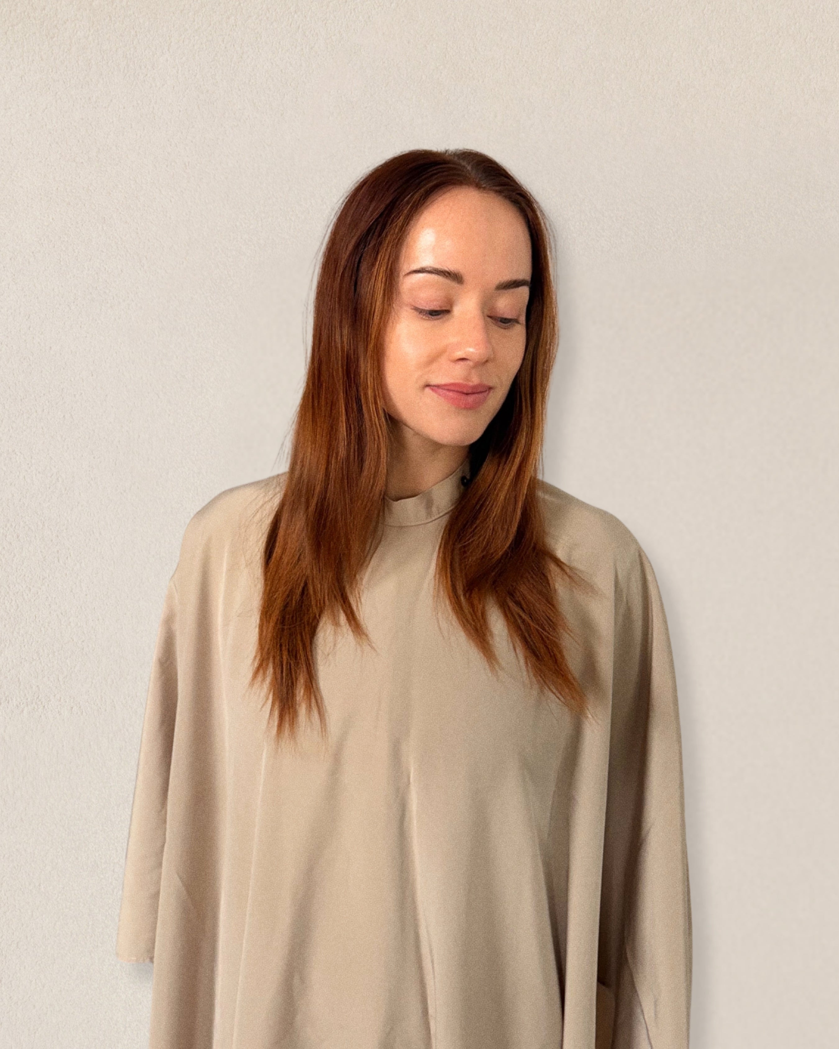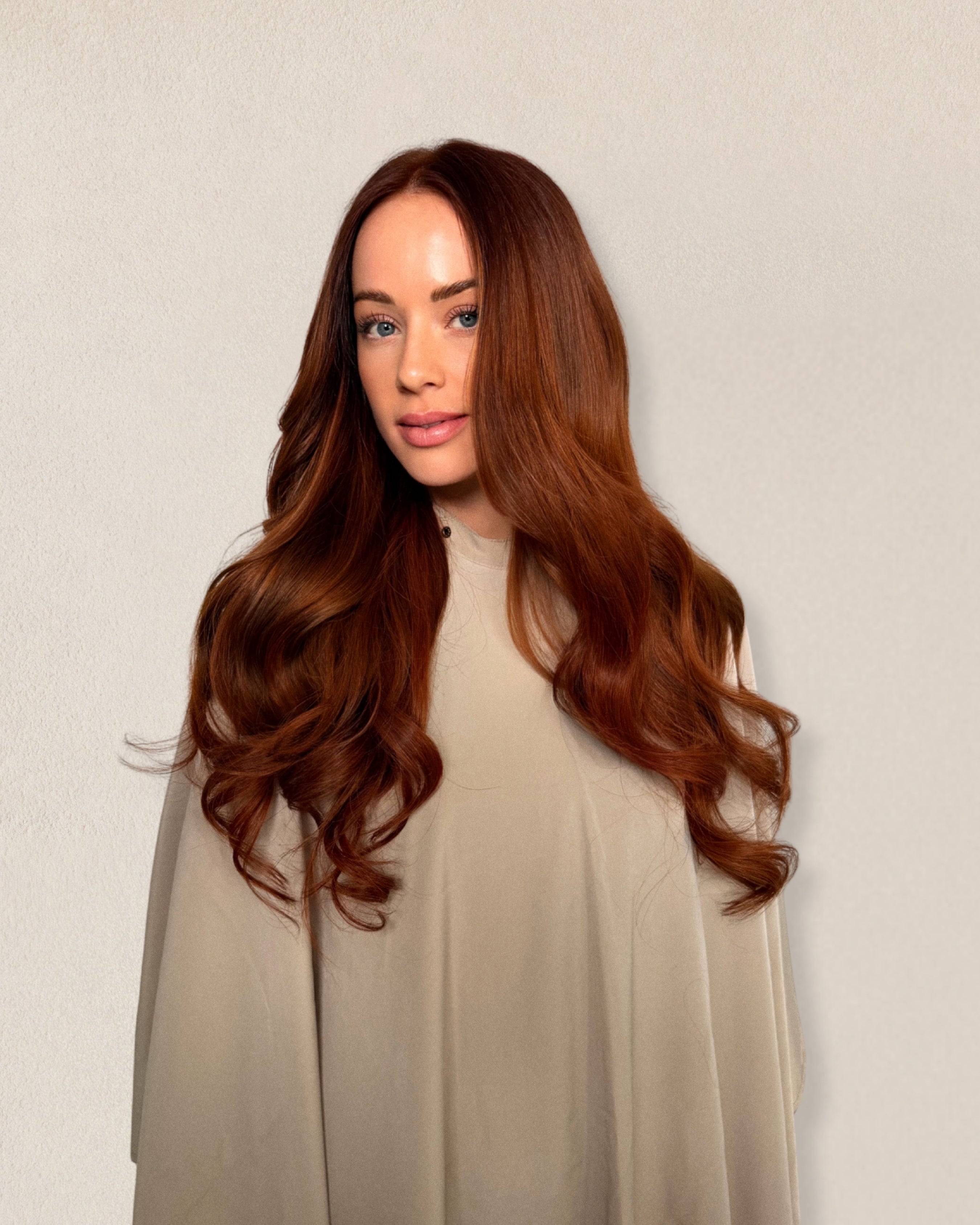 Result achieved with two packs of CelviSkin Clip-ins in 20" using the shade Brick custom colored